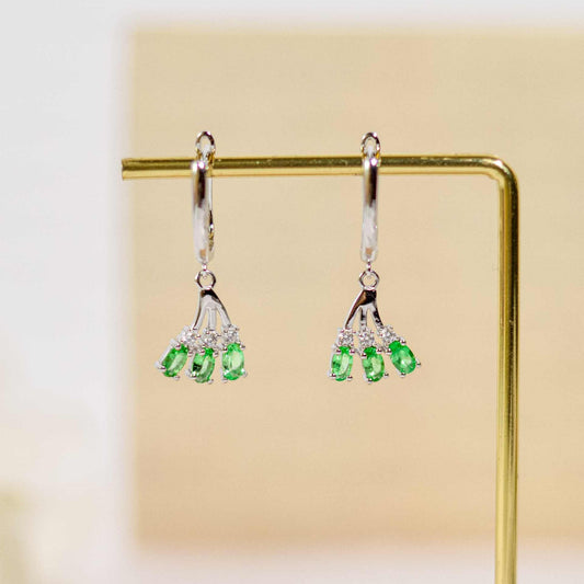 5 x 3 mm Tsavorite Garnet Cluster Dangling Earrings