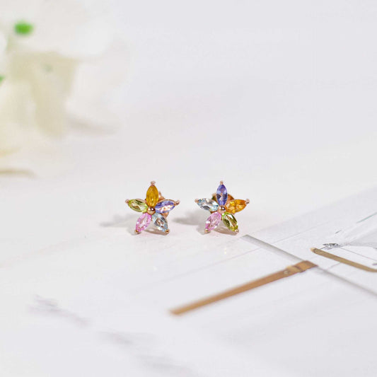 6 x 3 mm Marquise cut Flower Cluster Earrings (Yellow Thai Sapphire, Pink Tourmaline, Peridot, Tanzanite, Blue Topaz)