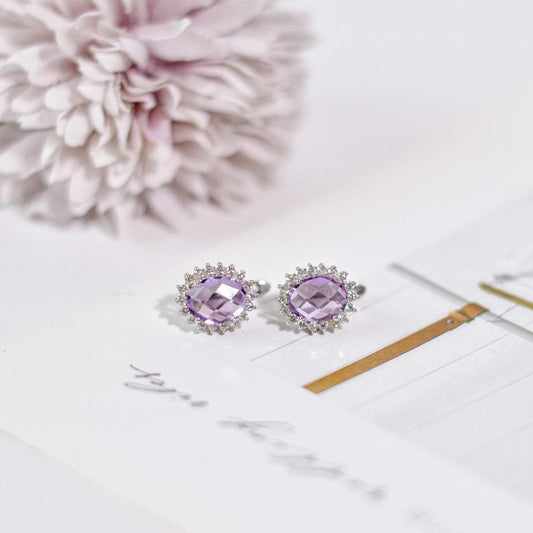 9 x 7 mm Oval cut Purple Amethyst Clip on Earrings