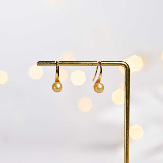 6.0 mm Champagne Round Pearl Yellow Gold Plated Dangling Earrings