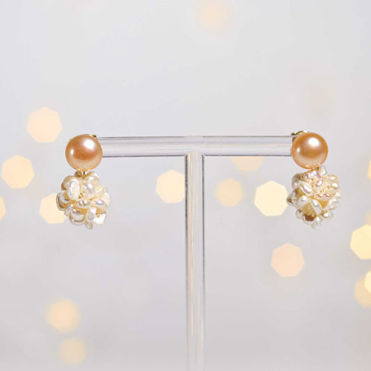8.7 mm Peach Siopao Pearl Yellow Gold Plated Dangling Earrings