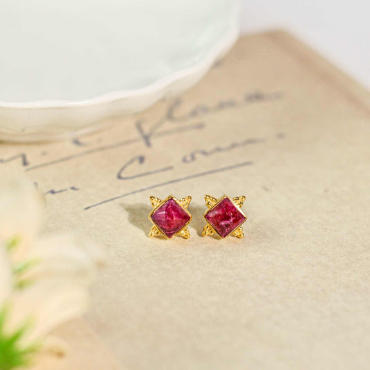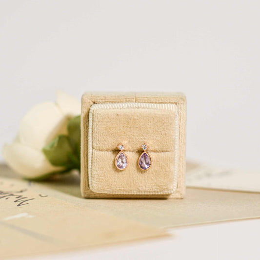 6 x 4 mm Pear cut Pink Amethyst with Cz Accent Earrings