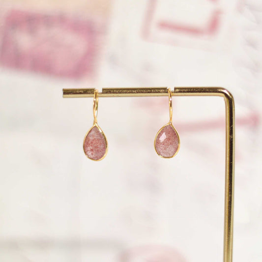 10 x 7 mm Pear cut Pink Strawberry Quartz Hook Earrings