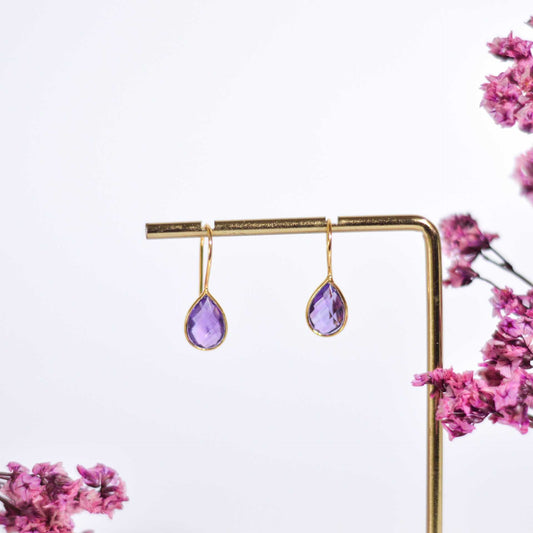 10 x 7 mm Pear cut Purple Amethyst Hook Earrings