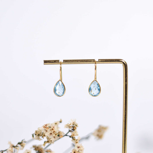 10 x 7 mm Pear cut Swiss Blue Topaz Hook Earrings