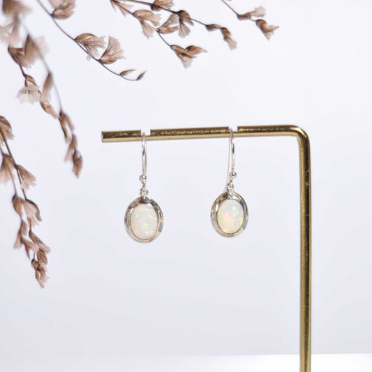 9 x 7 mm Oval cut Opal Cabochon Hook earrings