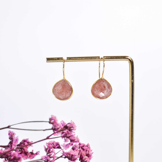 12 mm Pear cut Pink Strawberry Hook Earrings