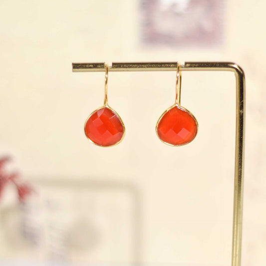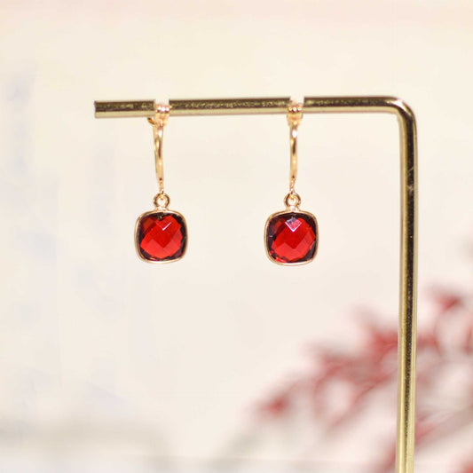 8 mm Cushion Briolette Red Garnet Small Hoop Earrings