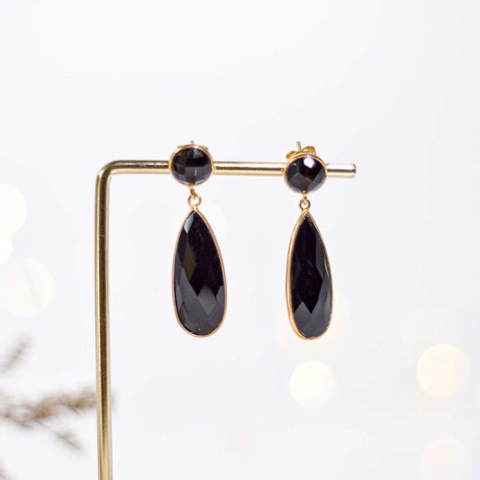 25 x 9 mm Pear cut Black Onyx Drop Earrings