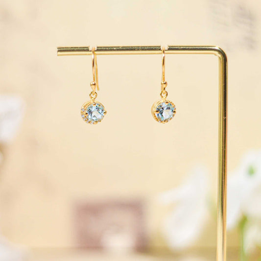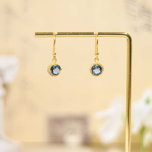 6 mm Round cut Blue Topaz with Crescent Cz Earrings