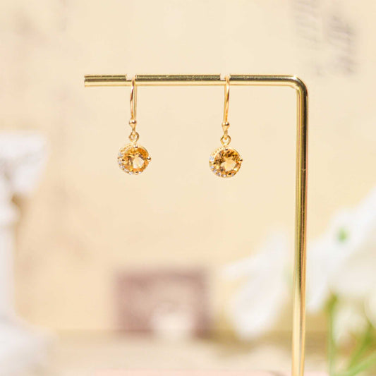 6 mm Round cut Citrine with Crescent Cz Earrings