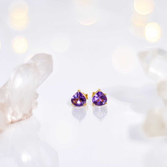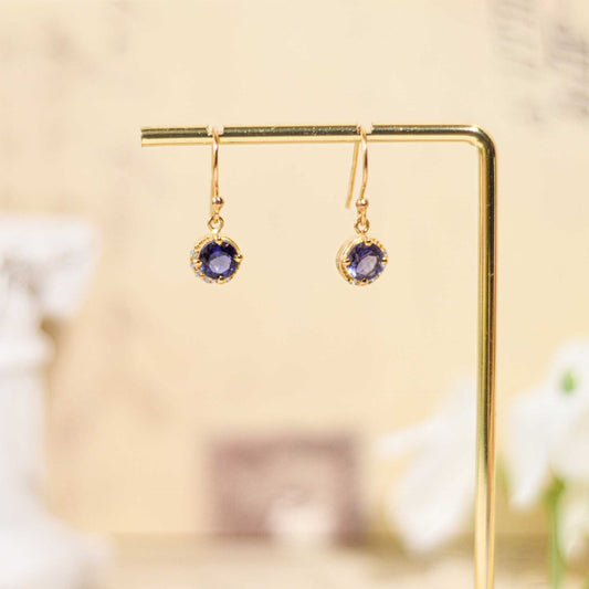 6 mm Round cut Iolite with Crescent Cz Earrings