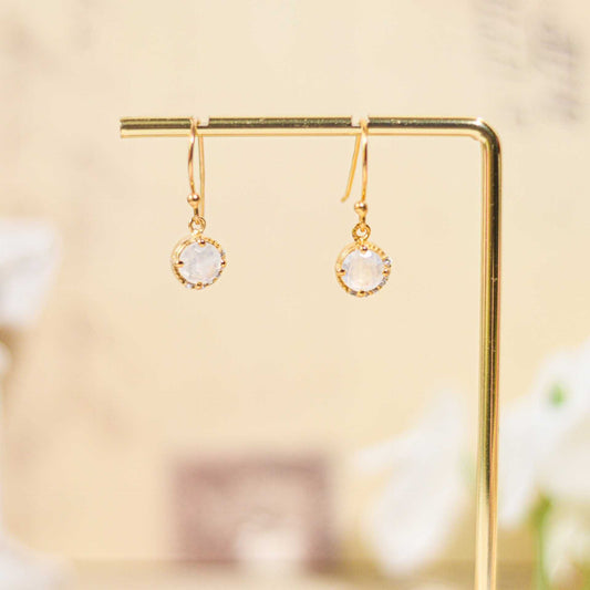 6 mm Round cut Rainbow Moonstone with Crescent Cz Earrings