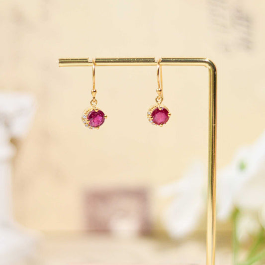 6 mm Round cut Ruby with Crescent Cz Earrings