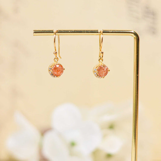 6 mm Round cut Sunstone with Crescent Cz Earrings