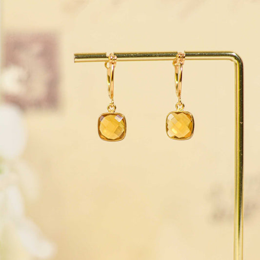 8 mm Cushion Briolette Citrine Small Hoop Earrings