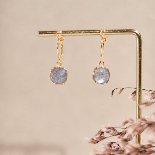 8 mm Cushion Briolette Labradorite Small Hoop Earrings