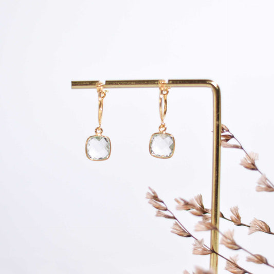 8 mm Cushion Briolette White Topaz Small Hoop Earrings