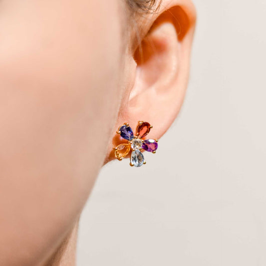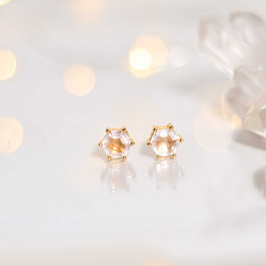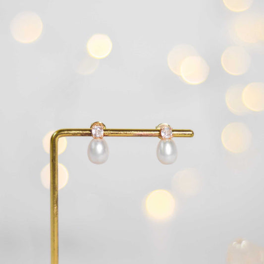 10.1 mm White Biwa Pearl Yellow Gold Plated with 4mm Zircon Stud Earrings