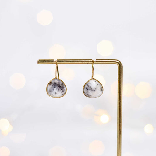 12 mm Pear cut Dendritic Opal Hook Earrings