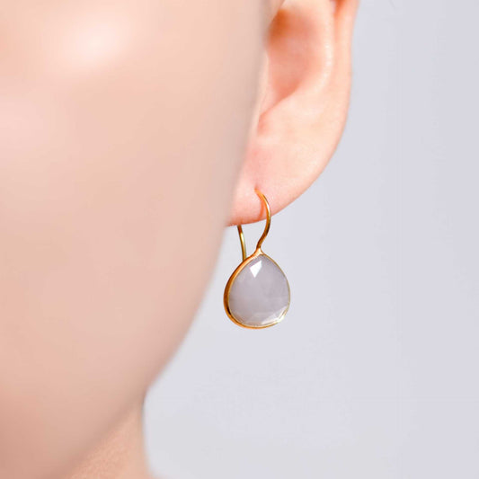 12 mm Pear cut Grey Moonstone Hook Earrings