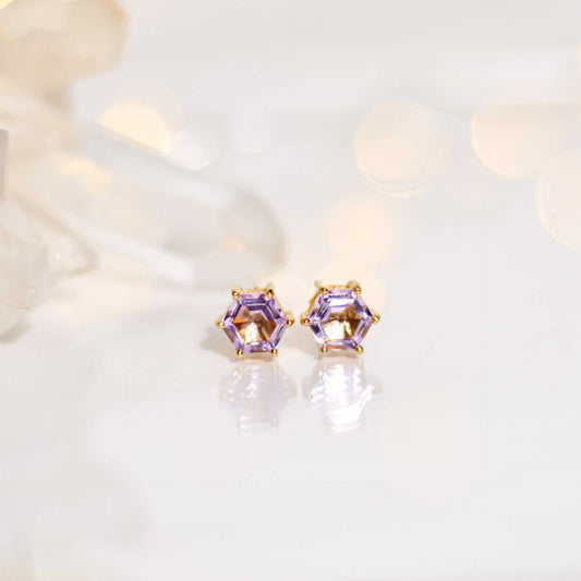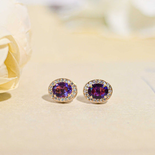 8 x 6 mm Oval cut Purple Amethyst with Cz Halo Earrings