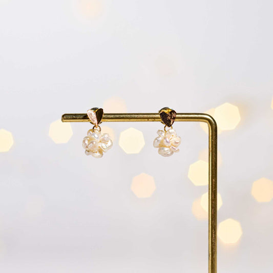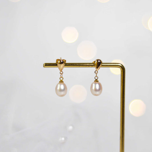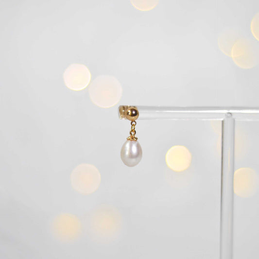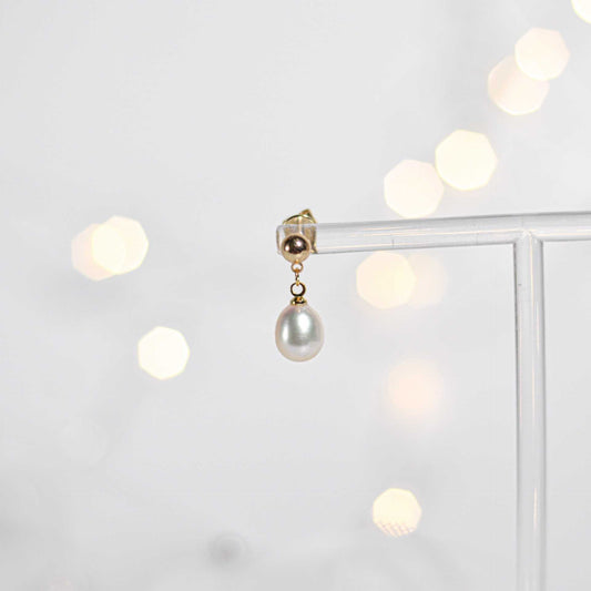 10 mm white biwa pearl dangling yellow gold plated with teardrop stud earrings