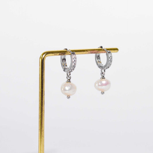 7.3 mm White Kieshe Pearl Rhodium Plated with Inlaid Zircon Hoop Earrings