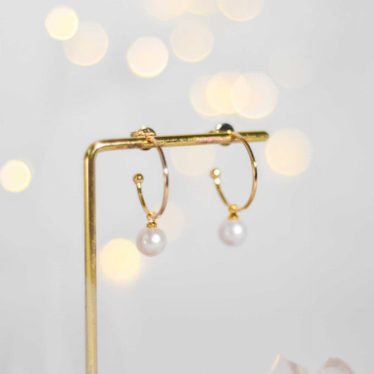 7.8 mm White Round Pearl Yellow Gold Plated Half Hoop Earrings