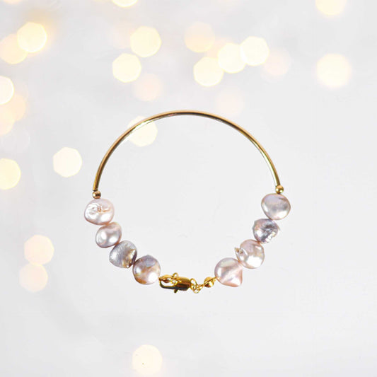 8 pcs. Purple Kieshe Pearls Yellow Gold Plated Bracelet with 60 mm Half Ring Elbow