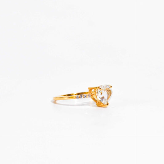 7 mm Heart cut White Topaz with Cz band Yellow gold plated Ring