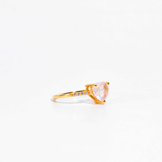 7 mm Heart cut Rose Quartz with Cz band Yellow gold plated Ring