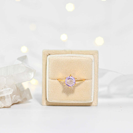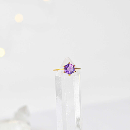 7 mm Hexagon cut Purple Amethyst Yellow gold plated Ring