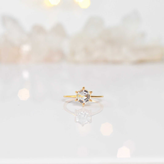 7 mm Hexagon cut White Topaz Yellow gold plated Ring