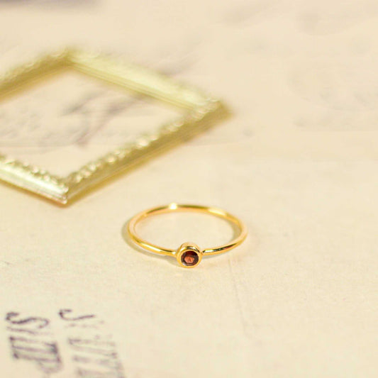 3 mm Round cut Red Garnet Stacking Ring