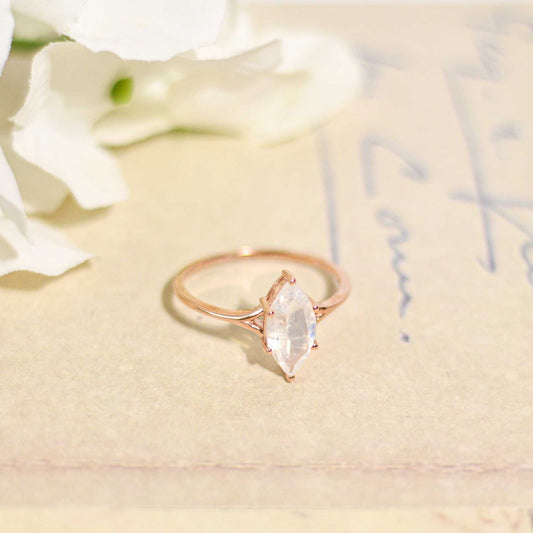 12 x 6 mm Marquise cut Rainbow Moonstone Rose gold plated Ring