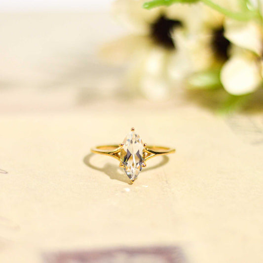 12 x 6 mm Marquise cut WhiteTopaz Yellow gold plated Ring