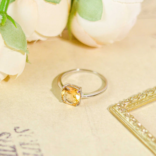 8mm Cushion cut Citrine Ring
