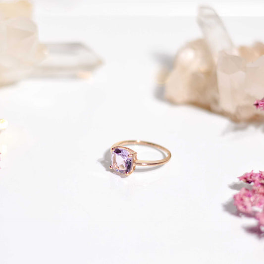 8mm Cushion cut Pink Amethyst Ring