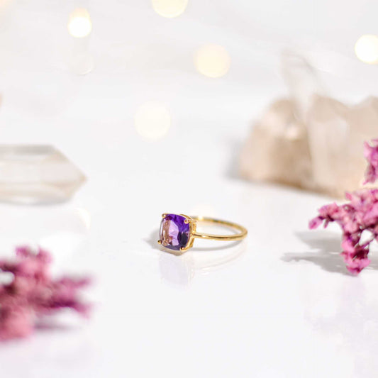 8mm Cushion cut Purple Amethyst Ring