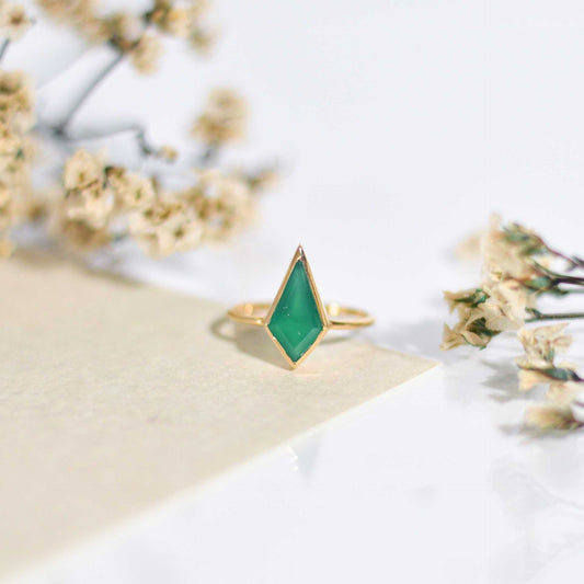 14 x 7 mm Kite Green Onyx Ring