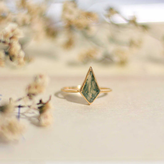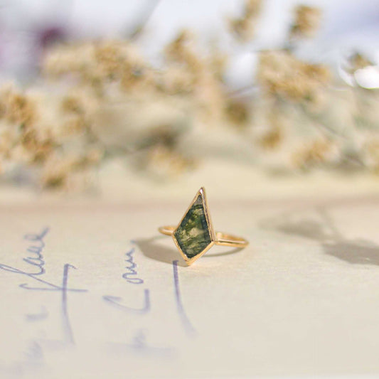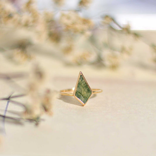 14 x 7 mm Kite Green Moss Agate Ring