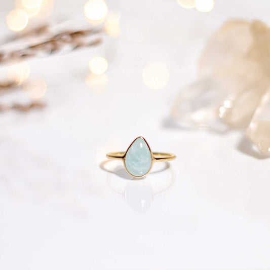 12 x 8 mm Pear cut Aquamarine Cabochon Ring