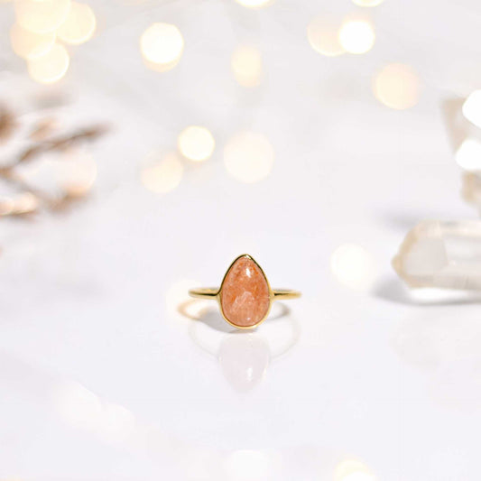 12 x 8 mm Pear cut Sunstone Cabochon Ring