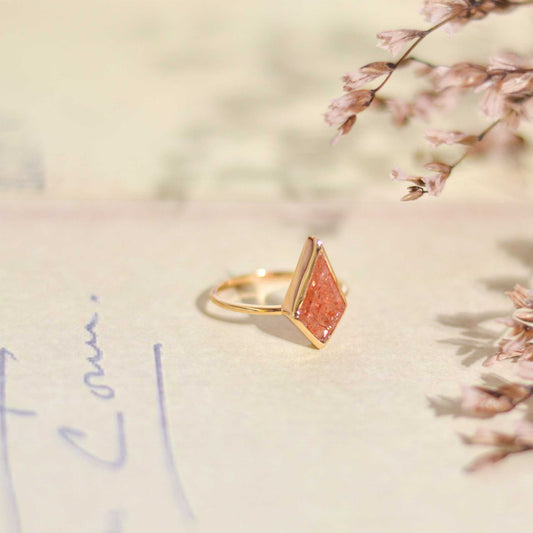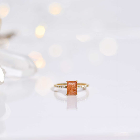 7 x 5 mm Baguette cut Sunstone with Cz band Ring