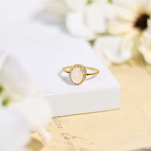 8 x 6 mm Oval cut Moonstone with Cz Halo Ring