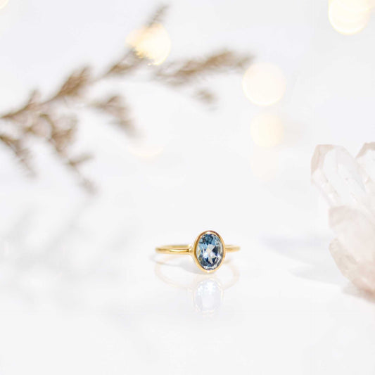 8 x 6 mm Oval cut London Blue Topaz Bezel Ring