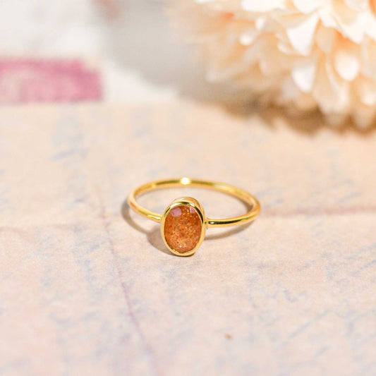 8 x 6 mm Oval cut Sunstone Bezel Ring