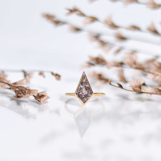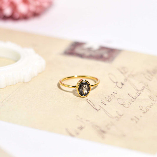 8 x 6 mm Oval cut Black Rutiliated Quartz Bezel Ring