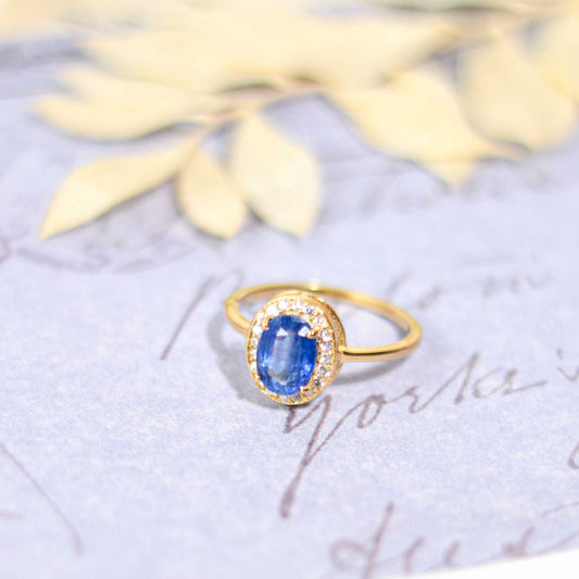 8 x 6 mm Oval cut Kyanite with Cz Halo Ring